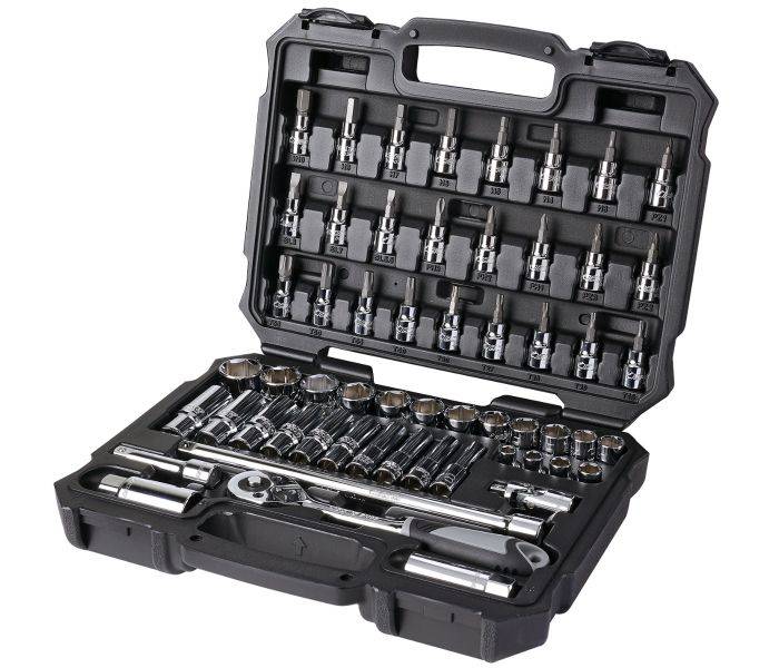 BOXO Socket set 3/8" è un set di 57 pezzi con bussole professionali, cricchetti e altri utensili manuali. Con questo set di bussole professionali BOXO, i professionisti più esigenti possono affrontare qualsiasi lavoro. Grazie al set completo, avrete sempre a portata di mano il tappo, la chiave a bussola e gli attrezzi manuali giusti durante i lavori.