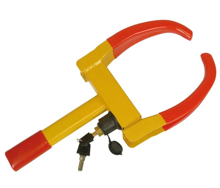 Questo bloccaruota Carpoint viene posizionato direttamente sulla ruota e impedisce che il veicolo possa muoversi. La morsetta è adatta sia per cerchi in acciaio che in alluminio ed è facile da montare. Grazie alla sua esecuzione evidente, il bloccaruota è ben visibile, il che aiuta a scoraggiare i furti.