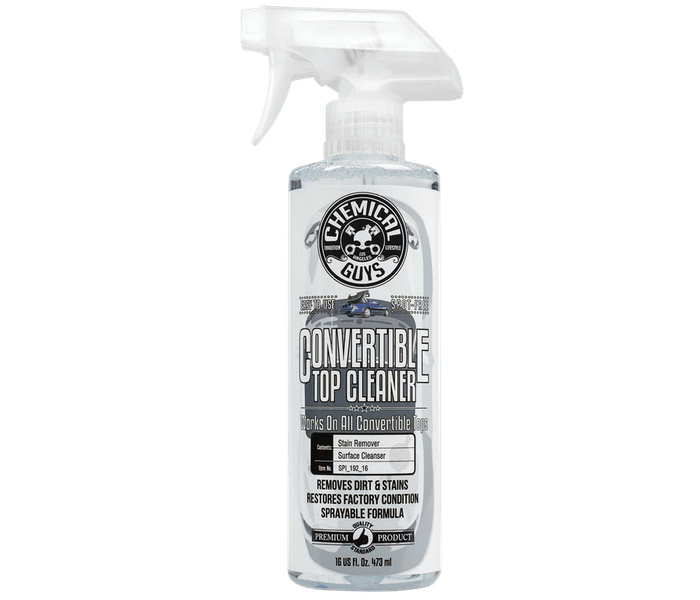 Chemical Guys Convertible Top Cleaner è un detergente usato per pulire la capote rimuovendo lo sporco e le macchie grazie alla formula di pulizia avanzata è sicura per l'uso su tetti convertibili in tessuto, vinile e sintetici.