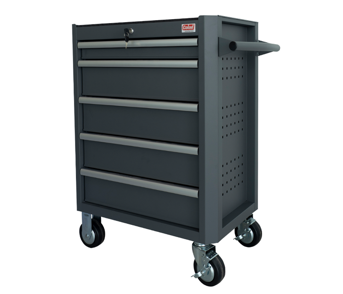 Il carrello porta attrezzi COLAD è la soluzione ideale in officina per organizzare e riporre tutti gli utensili. Questo robusto carrello è dotato di ruote scorrevoli che lo rendono facile da spostare. Con ben 5 cassetti e uno spazioso ripiano superiore, offre ampio spazio di archiviazione e superficie di lavoro. Grazie alla struttura robusta e ai materiali di alta qualità, il carrello è durevole e può sopportare un uso intensivo. Perfetto sia per i meccanici professionisti che per gli amanti del fai-da-te che desiderano lavorare in modo efficiente.