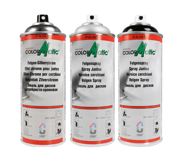 Colormatic Wheel Spray è una vernice ad alta copertura e a rapida essiccazione. La speciale composizione di questa vernice per cerchi la rende resistente al sale stradale. Ciò garantisce anche che la vernice sia resistente alle sbavature e ai graffi, in modo da ridurre le scheggiature. Questa vernice per cerchi è resistente al sale stradale, alle schegge di pietra, ecc. e all'usura. I cerchi in lega e i coprimozzi assumono un nuovo aspetto. Se desiderate uno strato di lucentezza elevata, eseguite un post-trattamento con la vernice trasparente Colormatic 1K o 2K.