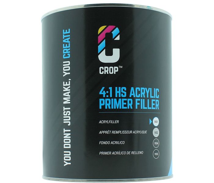 CROP HS Acrylic Primer Filler VS1 è un fondo High Solid ( Alto Solido ) di colore bianco con una buona capacità riempitiva che aderisce fortemente a metallo, alluminio, acciaio zincato, su primer plastico, stucco e vernice esistente. Grazie alla grande latta da 4 litri è ideale per la verniciatura completa di auto, furgoni o altre superfici di grandi dimensioni riempiendo le superfici irregolari come piccoli fori, crepe, microfori, graffi di carteggiatura e altre imperfezioni, inoltre, questo fondo è ad asciugatura rapida e può essere facilmente carteggiato per ottenere una superficie liscia prima di verniciare con vernici 2K o con vernici 1K a base d'acqua o solvente.