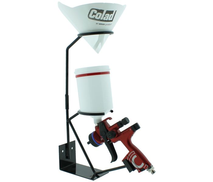 Il supporto CROP per spruzzatore e filtro è estremamente stabile e verniciato a polvere in nero per evitare la ruggine. Collocando un filtro per vernici e lo spruzzatore nel supporto, entrambe le mani sono libere di versare meticolosamente la vernice nella tazza superiore. Il filtro filtrerà immediatamente la vernice prima che entri nella tazza superiore della pistola a spruzzo. Il risultato è una vernice sempre priva di polvere al 100%!