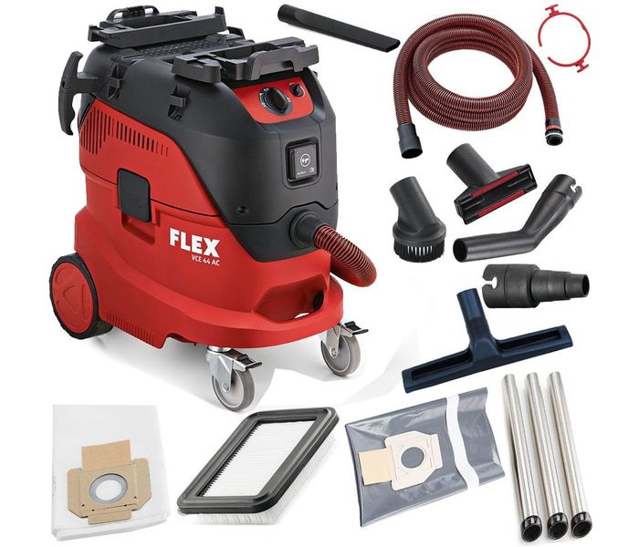 L'aspirapolvere levigatore FLEX VCE 44 L AC è un aspirapolvere extra large e molto potente che include un kit di pulizia completo per la levigatura in officina e in edilizia. L'aspirapolvere levigatore FLEX VCE 44 L AC è dotato di un sistema di pulizia automatica del filtro e di un interruttore elettrico.