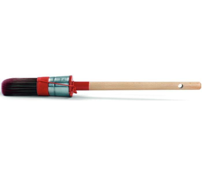 Un pennello rotondo o piatto dipende dal lavoro di verniciatura. Un pennello rotondo consente di distribuire la vernice in modo eccellente ed è indispensabile per la verniciatura di piccole superfici come telai di finestre e sedie. Le fibre di un pennello rotondo hanno un'elevata capacità di assorbimento della vernice, rendendo l'applicazione più controllabile. La spirale di corda incollata intorno al pennello tiene unite le setole.