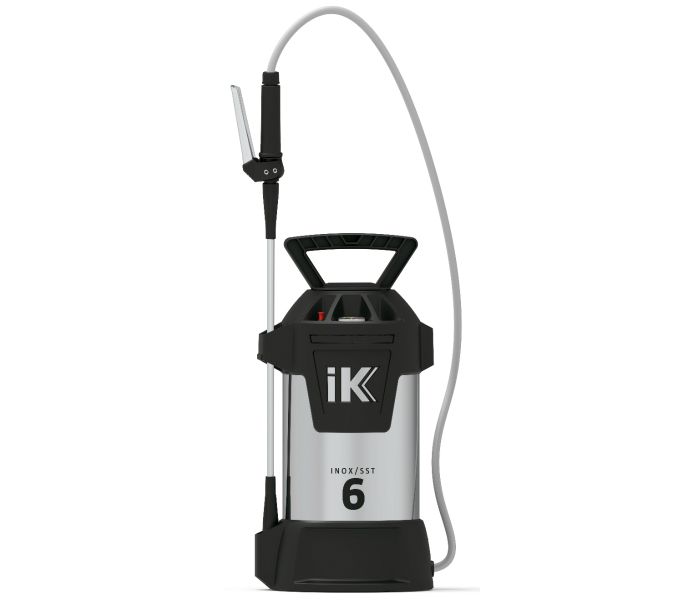 iK Inox SST 6 è una pompa a pressione con un serbatoio in acciaio inox da 6 litri, particolarmente indicato per l'edilizia, l'industria e il settore della pulizia professionale per spruzzare olio, solvente, lubrificante e altri detergenti. Dotato di guarnizioni FPM di alta qualità, resistenti a un'ampia gamma di solventi, detergenti e oli ed è dotata di una valvola per l'aria compressa dove è possibile collegarlo anche ad un compressore.