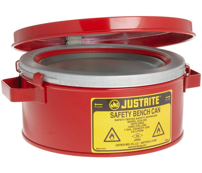 Le caraffe di sicurezza JUSTRITE puliscono in modo sicuro i piccoli pezzi con solventi infiammabili grazie a un semplice movimento verso il basso. La brocca di immersione è realizzata in metallo verniciato a polvere, in grado di resistere ai liquidi più aggressivi!