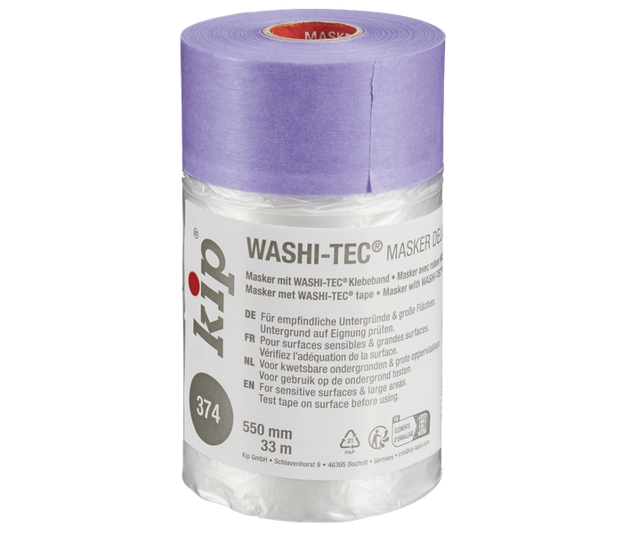 La maschera Kip 374 Washi Tec Delicate Mask è stata sviluppata appositamente per ottenere linee di vernice strette e nette senza che la vernice trapeli. La pellicola di mascheratura staticamente adesiva con washi tape facilita la copertura di grandi aree in modo rapido ed efficiente. Grazie alla sua forza adesiva delicata, il nastro è ideale per le superfici sensibili come carta da parati, vernice fresca o vernice. Adatto per superfici lisce e leggermente ruvide e perfetto per proteggere mobili, battiscopa, pareti, pavimenti e porte. Ideale per lavori di pittura, verniciatura e spruzzatura.