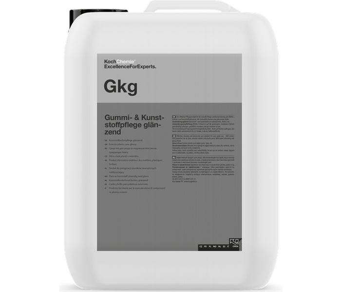 Koch Chemie GKG l’efficace prodotto di manutenzione per una rapida manutenzione e conservazione di pneumatici e di componenti esterni in gomma o in plastica. Ravviva il colore e conferisce brillantezza alle superfici.