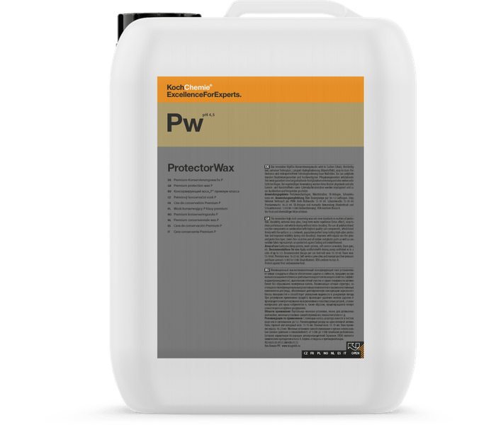 Koch Chemie Protector Wax è una cera per auto che garantisce una finitura della vernice lucida e vellutata. All'avanguardia in termini di durata, lucentezza profonda, effetto idrofobico, protezione e asciugatura senza microperle dei veicoli. La cera spray migliora notevolmente la visibilità in caso di pioggia, poiché le gocce vengono allontanate.