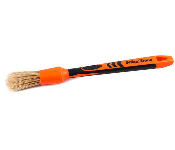 MaxShine Detailing Brush – Classic Boar’s Hair ha una setola di maiale naturale al 100% ha un diametro di 16mm di e riesce ad arrivare nei punti più difficili da raggiungere, come bocchette di ventilazione, crepe, cuciture, battitacco e altro ancora. Contiene setole di cinghiale di alta qualità, estremamente morbide e resistenti, garantendo un lavoro senza graffi su vernice dell'auto, pelle, vernice per pianoforte, parti interne e altre superfici. Grazie all'impugnatura ergonomica e al materiale antiscivolo, questo pennello rimane comodamente in mano durante la pulizia.