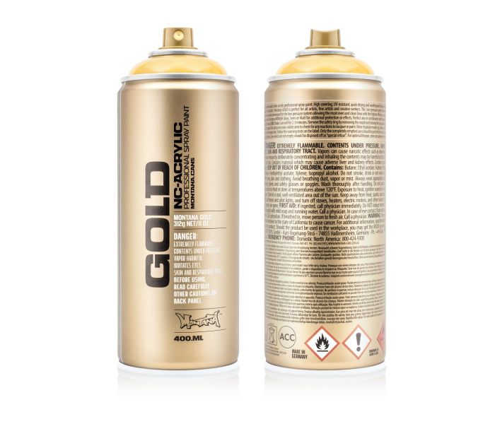 Labomboletta spray Montana per graffiti Transparent Yellow Cab della serie GOLD è confezionata in uno spray a bassa pressione. Poiché la bomboletta Montana GOLD è uno spray a bassa pressione, è possibile spruzzare la vernice per graffiti in modo molto controllato, con un controllo ottimale del risultato. La vernice aerosol Montana GOLD Transparent Yellow Cab T1220 si asciuga rapidamente e senza problemi, anche a basse temperature. Grazie alla speciale formula antigoccia, si evitano gli abbassamenti!