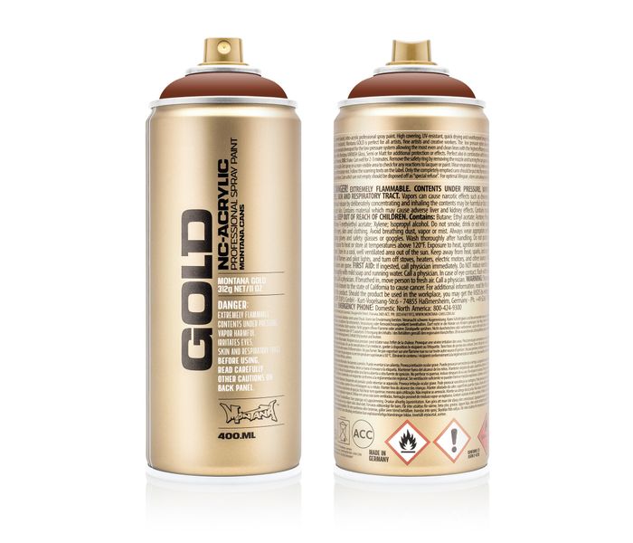 La bomboletta spray Montana per graffiti Orange Brown della serie GOLD è confezionata in uno spray a bassa pressione. Poiché la bomboletta Montana GOLD è uno spray a bassa pressione, è possibile spruzzare la vernice per graffiti in modo molto controllato, con un controllo ottimale del risultato. La vernice Montana GOLD Orange Brown G8100 si asciuga rapidamente e senza problemi, anche a basse temperature. Grazie alla speciale formula antigoccia, si evitano gli abbassamenti!