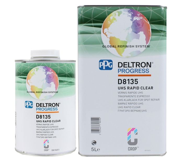PPG D8135 UHS Rapid Clear è un trasparente lucido 2K Ultra High Solid (Ultra Alto Solido) che può essere spruzzato su qualsiasi base 1K noto per l'elevatissima brillantezza, copertura e la fantastica protezione del colore con la sua eccellente protezione contro i graffi, raggi UV, benzina, prodotti chimici e altre influenze esterne che possono intaccare la vernice colorata.