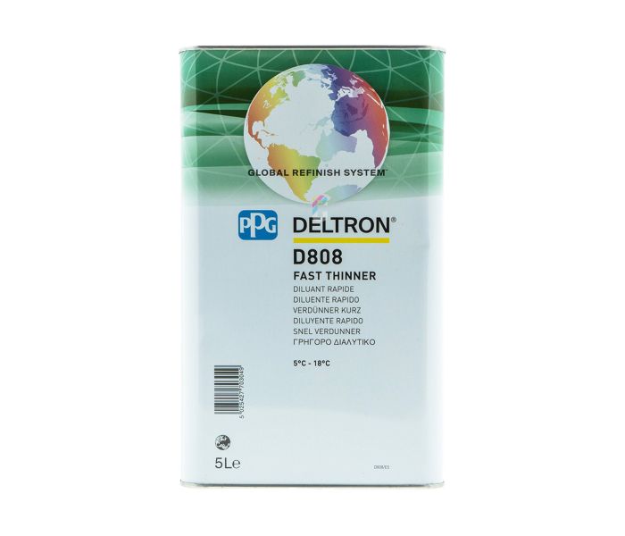 PPG D808 è adatto all'uso con tutti i prodotti PPG. Utilizzando il diluente giusto, si migliora la qualità della nebulizzazione.