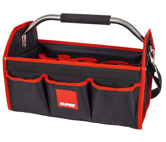 Ilportabottiglie RUPES è il miglior kit per il car detailing per trasportare facilmente i flaconi di pasta lucidante, i pad di lucidatura e i panni in microfibra. Tutto ciò di cui avete bisogno durante la lucidatura e la cura dell'auto sarà d'ora in poi a portata di mano grazie a questo portabottiglie RUPES. La borsa è dotata di 8 ampi scomparti al centro e di 6 scomparti sui lati. Sul lato, il portabottiglie è stampato con il logo RUPES per un look professionale.