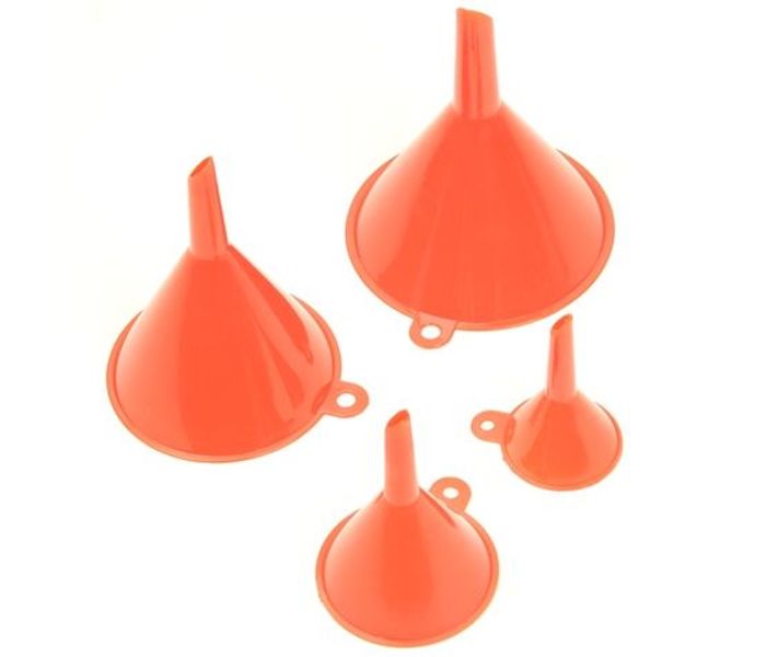Pratico set composto da 4 imbuti con diametri diversi: 45, 65, 85 e 105 mm.