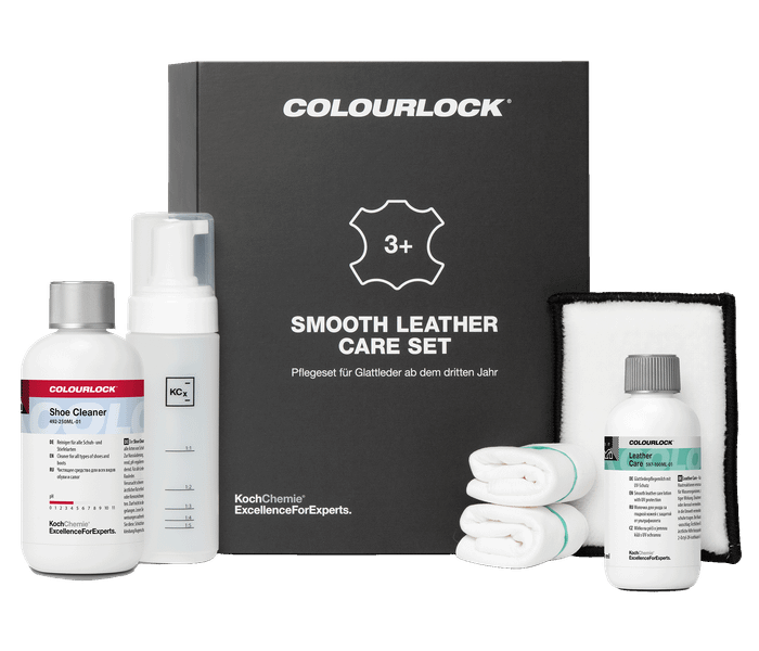 Colourlock Glattleder Pflegeset è ideale per interni di auto, mobili in pelle, borse e altri rivestimenti in pelle. In caso di sporco, è importante pulire prima la pelle con il detergente delicato per lo sporco normale o con il detergente forte per lo sporco ostinato; in questo modo si evita che le macchie si fissino nella pelle durante la cura. La spazzola di pulizia in dotazione è utile per lo sporco profondo nella struttura del fiore della pelle. Per le superfici in pelle più vecchie (a partire dal terzo anno), si consiglia la cura con il Leather Protector. Questo protegge la pelle con antiossidanti contro l'invecchiamento e con filtri UV contro lo scolorimento, mantenendo la sua naturale morbidezza e lucentezza.