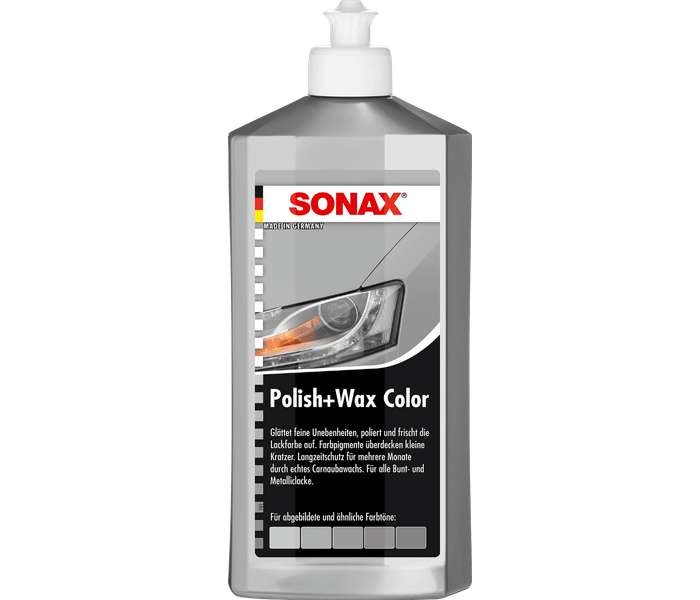 SONAX Polish + Wax Grigio è un lucidante per auto con pigmenti grigi sviluppato appositamente per la lucidatura di auto con vernice grigia. Questa cera microabrasiva pulisce a fondo la vernice rimuovendo piccoli graffi superficiali dando una brillantezza assoluta all'auto. Poiché i pigmenti sono grigi, questo polish aggiunge colore alla vernice conferendo all'auto un colore più intenso e facendola sembrare ancora più grigia!