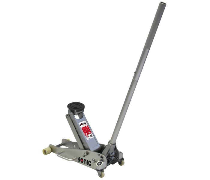 SONIC Aluminium Garage Jack è un cric professionale per il sollevamento di qualsiasi auto. Questo cric da garage è realizzato in alluminio leggero e ad alta resistenza, ideale per un uso quotidiano, intensivo e professionale. Il martinetto SONIC Aluminium ha un'altezza minima di 80 mm e un'altezza massima di 375 mm. Il cric da garage è dotato di un cuscinetto di protezione in gomma e di un rialzo aggiuntivo in gomma di 95 mm.