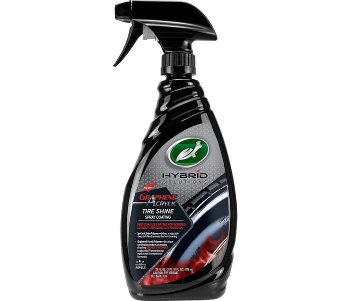 Turtle Wax Graphene Acrylic Tyre Shine è un nero per pneumatici professionale che durerà a lungo e farà brillare gli pneumatici opachi! Grazie a questo prodotto è possibile annerire gli pneumatici facendoli tornare come nuovi. Grazie alla sua combinazione del grafene high-tech e polimeri acrilici per annerire gli pneumatici in gomma da una profonda lucentezza e risulteranno idrorepellenti, resistenti agli agenti chimici ed ai raggi UV.