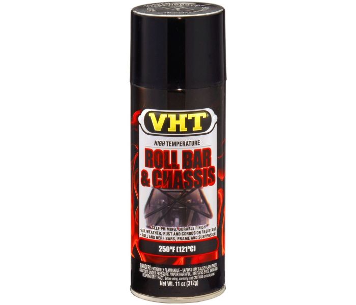 VHT Roll Bar & Chassis Paint Black Silk Gloss è una vernice resistente al calore per spruzzare il telaio o il roll bar della vostra auto. Questa bomboletta per roll bar e telaio è resistente a 121°C, quindi il colore rimane bello a lungo. Grazie alla sua alta qualità, la vernice per telaio è resistente agli urti, ai graffi e al calore.