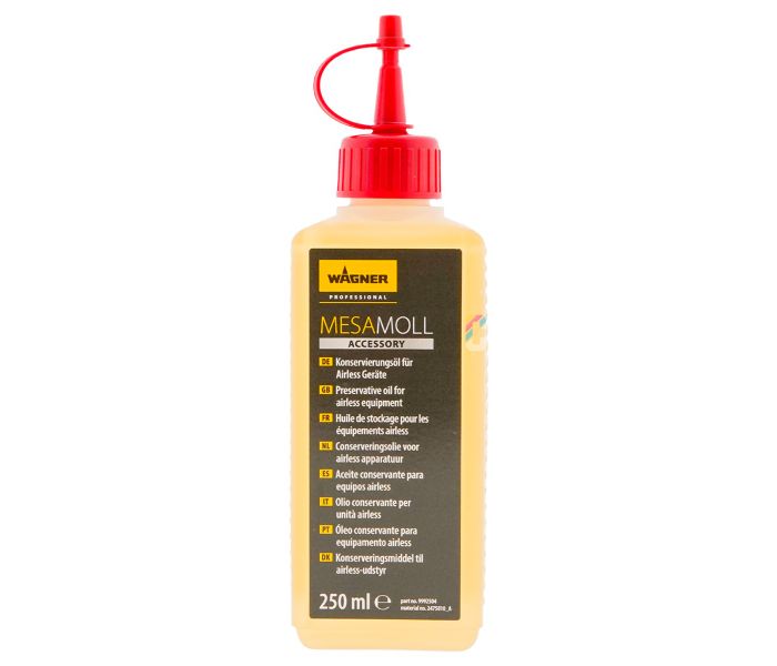 Wagner Olio Separatore è un olio di alta qualità sviluppato appositamente per lubrificare e proteggere le pompe Airless e AirCoat. Questo olio impedisce il deposito di vernice sull'albero della pompa, prolungando la vita utile dell'apparecchiatura e prevenendo i guasti. Ideale per l'uso professionale nella spruzzatura di pitture, vernici e rivestimenti.