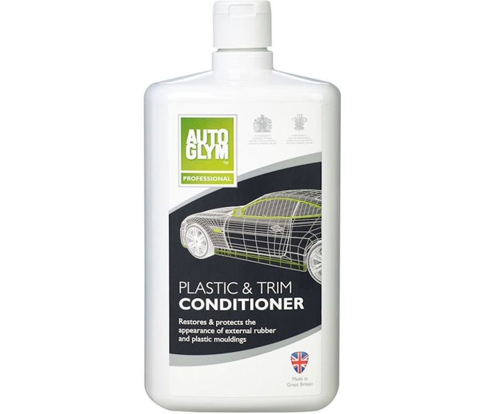 AUTOGLYM Plastic & Trim Conditioner herstelt en beschermt het kunststof en rubber aan je auto. De AUTOGLYM Plastic & Trim Conditioner herstelt de kleur van bumpers, strippen, spiegelhouders, onderdelen van de grill, verweerde matzwarte afwerkingslagen en banden. AUTOGLYM Plastic & Trim Conditioner bevat hoogwaardige harsen die niet alleen de plastic delen rondom de auto weer glans geven maar tegelijkertijd ook moeiteloos afrekenen met veroudering en verkleuring door weersinvloeden zoals bijvoorbeeld het blekende effect van de zon, regen en verkeersaanslag.