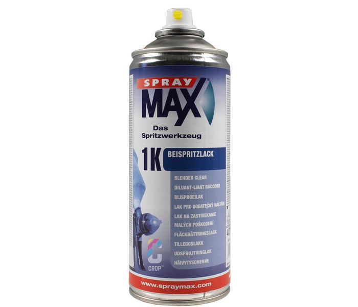 SprayMax Bijspuitlak spuitbus is een speciale uitspuitverdunning met blanke lak voor een vloeiende overgangen bij spotrepair. Deze bijspuit blanke lak is te gebruiken met alle 1K en 2K lakken. De SprayMax bijspuitlak bevat een speciale lakverdunner, die de oude en de nieuwe lak in elkaar laten overvloeien waardoor een naadloze en onzichtbare overgang ontstaat! De SprayMax Bijspuitlak is de laatste stap bij spotrepair reparaties voor het verwerken van de nevelrand die naar de oude lak loopt