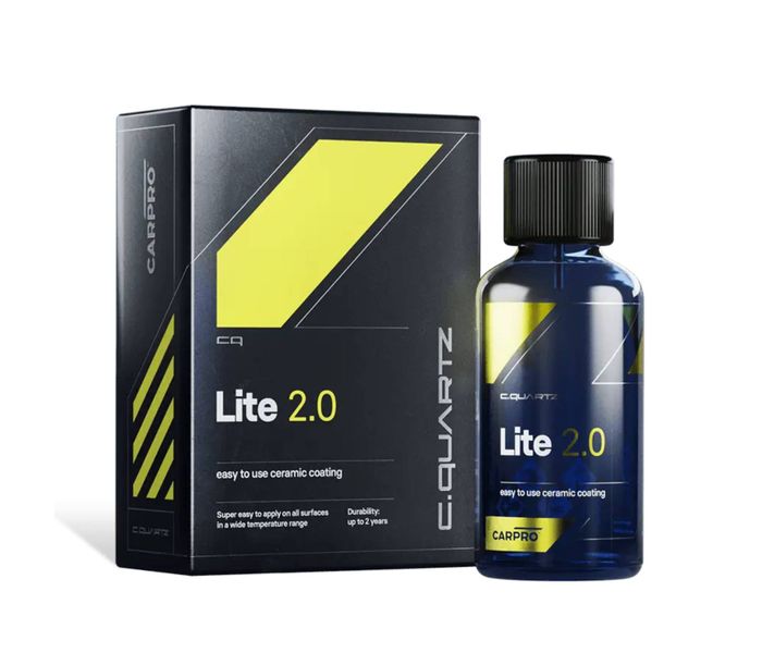 - Deze Lite-versie geeft iets minder lange bescherming dan de andere CarPro CQuartz coatings