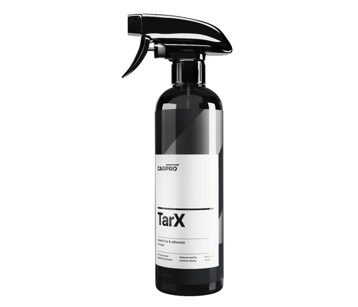 TarX van CarPro vermindert de behoefte aan intenstief auto kleien. De krachtige teer- en lijmverwijderaar werkt zeer snel en laat behandelde oppervlakken schoon achter. Wanneer TarX royaal op donkere of zwarte auto's wordt aangebracht, begint het te gloeien. De glow in the dark functie verbetert de zichtbaarheid zodat het makkelijker is om alle sporen na te spoelen. De teerverwijderaar wast gemakkelijk af met water.