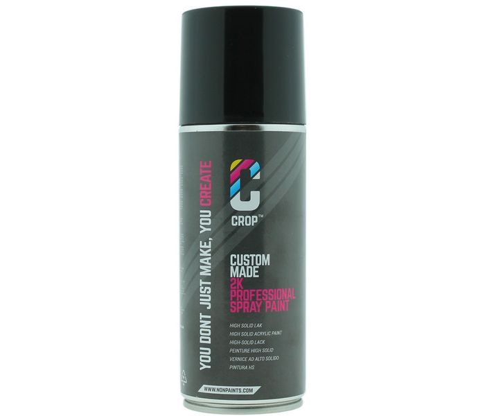 CROP 2K spuitbus ZWART in de kleur RAL9005 met de hoogste kwaliteit lak is afgevuld in de beste 2 componenten spray om professioneel mee te spuiten. Deze spuitbus 2K lak zwart is krasvast, benzinebestendig en UV bestendig waardoor de verf niet verkleurt, dof wordt of vervaagd. Op de 2K spuitbus zwart zit een speciale spraycap waarmee je de zwarte verf strak en dekkend kan spuiten. Het spuitbeeld van deze zwarte 2K spray staat gelijk aan die van een HVLP verfspuit. Je kan deze CROP 2K spuitbus kopen in mat, hoogglans, ultra mat en zijdeglans!