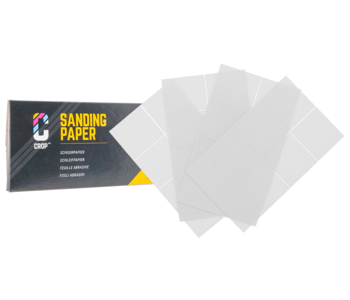 CROP MicroX Schuurfilm Stickers P1200 zitten als 32 stuks verpakt op 4 vellen. Deze polyester film schuurvellen plak je als een sticker op je schuurblokje om stofpuntjes te verwijderen, lakfouten te herstellen en zakkers in verf of onregelmatigheden te egaliseren. De ultra fijne P1200 korrels zijn bestrooid op een hoogwaardige polyesterfilm dat bestand is tegen water en ontvetter. Hierdoor kun je met deze schuurfilm velletjes autolak nat schuren en micro polijsten zonder de lak te beschadigen. Na het ontzettend fijn nat schuren met deze micro schuurfilm stickers, geniet je van een spiegelgladde finish! Voor professionele car detailers en autolak perfectionisten betekent dit dat elk detail nauwkeurig kan worden bewerkt, zodat het eindresultaat een hoogwaardig, professioneel afgewerkt oppervlak oplevert dat voldoet aan de strengste kwaliteitsnormen in de autolak- en detailingindustrie.