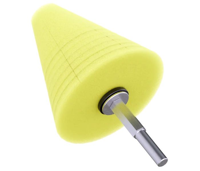 De polijstkegel heeft een harde foam waarmee krassen en swirls kunnen worden verwijderd van autolak. Dankzij de vorm van de kegel breng je machinaal wax aan op moeilijk bereikbare plekken.