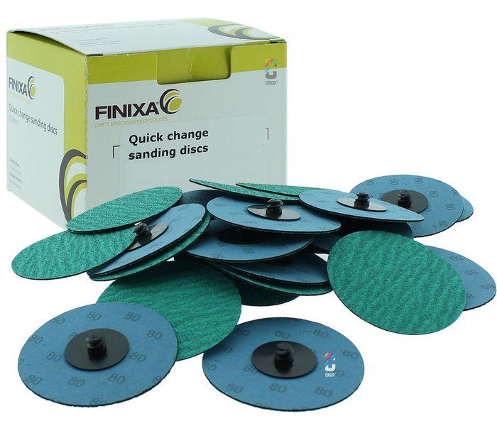 FINIXA Quick Change ROLOC slijpschijf 75mm voor het snel slijpen, lak, verf en roest verwijderen. Deze ROLOC slijpschijven hebben een diameter van 50mm en bevestig je op een slijpmachine of boormachine met ROLOC aansluiting. De FINIXA Quick Change schuurschijven zitten verpakt per 25 slijpschijfes en zijn leverbaar in korrel grofte P50 en P80. Hierdoor kan is er voor iedere schuur- en slijpklus een 50mm ROLOC slijpschijfje. Het voordeel van een kleine ROLOC disc is dat je kleine en moeilijk bereikbare plekken kan slijpen.