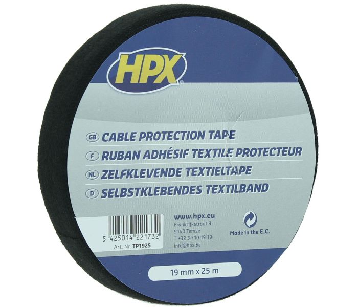 HPX Linnen Tape ZWART 19mm op 25 meter rol om stroomkabels en elektriciteitsdraden te bundelen en af te werken. Dit zelklevende zwart linnen tape wordt OEM en fabrieksorigineel in auto's gebruikt om o.a. de kabelboom weer af te werken na een reparatie. Het hoogwaardige linnentape werkt geluiddempend en is ontzettend duurzaam. Met deze extra grote rol linnen tape van 25 meter heb je voldoende kabelbeschermingstape voor grote klussen!