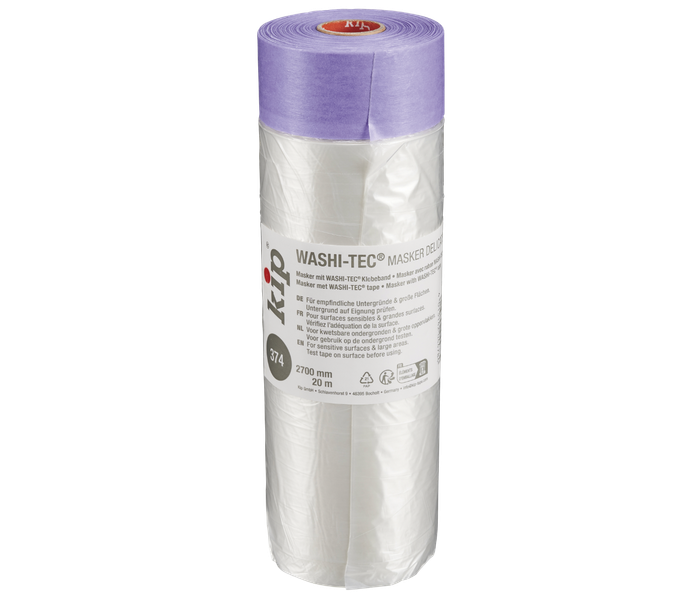Kip 374 Washi Tec Delicate Masker is speciaal ontwikkeld voor strakke, scherpe verflijnen zonder verfdoorloop. De statisch hechtende afdekfolie met washi tape maakt het eenvoudig om grote oppervlakken snel en efficiënt af te dekken. Dankzij de delicate kleefkracht is de tape ideaal voor gevoelige ondergronden zoals behang, vers schilderwerk of lak. Geschikt voor gladde en licht ruwe oppervlakken en perfect om meubels, plinten, wanden, vloeren en deuren te beschermen. Ideaal voor zowel schilder-, verf- als spuitwerkzaamheden.