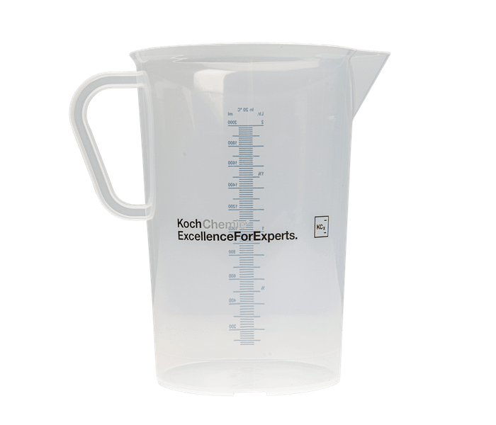 De 2 liter maatbeker van Koch Chemie wordt geleverd met een voorgedrukte schaalverdeling.