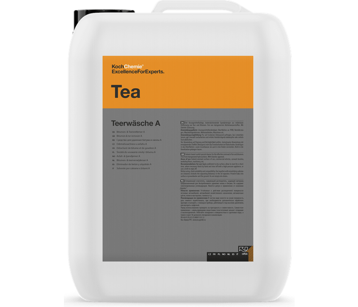 Koch Chemie Teerwäsche is een krachtige reiniger voor het moeiteloos verwijderen van bitumen en teer. De bitumenverwijderaar is geschikt voor alle oplosmiddelbestendige oppervlakken van voertuigen, borstels, werkplaatsvoeren en machines. Daarnaast kan de Koch Chemie Teerwäsche A gebruikt worden voor het verwijderen van teerspetters op autolak.