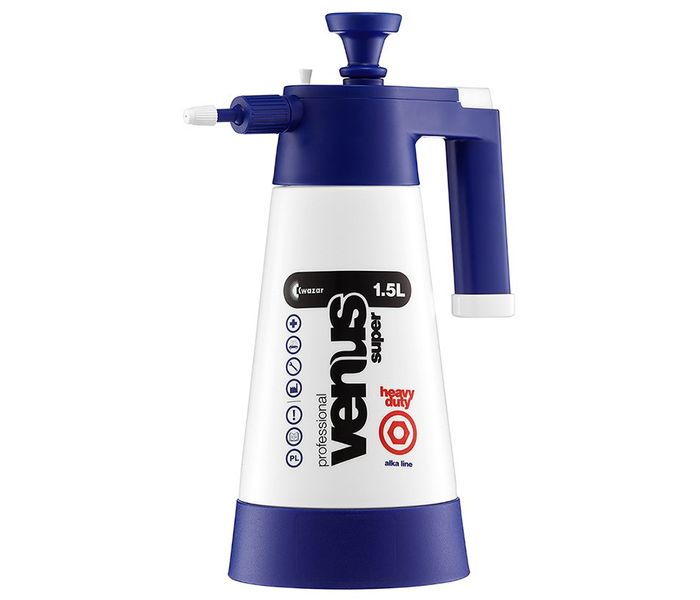 Kwazar Venus Super HD Alkalische Drukspuit - 1,5 liter is een robuuste handpomp drukspuit voor het gelijkmatig aanbrengen van alkalische reinigingsmiddelen. Dankzij de stevige bouw en praktische inhoud van 1,5 liter werk je efficiënt op middelgrote oppervlakken, zonder steeds bij te vullen. Deze drukspuit is ontwikkeld voor professioneel gebruik in onder andere werkplaatsen, industrie en schoonmaakomgevingen. De EPDM afdichtingen zorgen voor een betere chemische bestendigheid bij alkalische vloeistoffen, waardoor je veilig en gecontroleerd kunt werken. Met de verstelbare sproeikop bepaal je eenvoudig de juiste spray voor jouw klus.