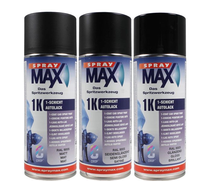 SprayMax zwarte lak in spuitbus is een professionele spuitlak in een diep zwarte kleur (RAL9005). Deze spuitbus van SprayMax bevat professionele zwarte verf die bekend staat om zijn extreem goede dekking, duurzaamheid en kleurechtheid. Daarnaast hecht deze zwarte verf geweldig op alle metalen, aluminium, hout en kunststof, mits daarvoor een hechtprimer gebruikt te hebben.