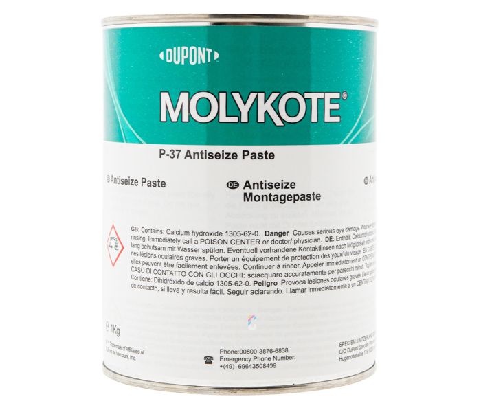 MOLYKOTE P37 Anti Seize Pasta wordt gebruikt in zeer kritische schroefdraadverbindingen die blootstaan aan hoge temperaturen en belastingen, zoals die in gas- en stoomturbines, verbrandingsmachines, warmtewisselaars, uitlaatsystemen en power-plant installaties. Deze MOLYKOTE smeerpasta wordt ook toegepast in materialen met hoge legeringsgehaltes (zoals nikkel-chroom staal) waar klassieke smeermiddelen tot spanningscorrosie kunnen leiden.