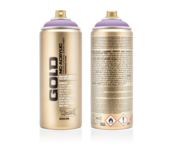 Montana graffiti spuitbus Viola uit de GOLD-serie zit verpakt in een lage druk spray. Doordat de Montana GOLD spuitbus een low pressure spray is kan je de graffiti verf zeer gecontroleerd spuiten met een optimale controle over het resultaat. Deze Montana GOLD Viola G4210 spuitbus lak droogt zijdeglans en snel op, ook bij koude temperaturen. Dankzij de speciale anti-drip formule voorkom je zakkers!