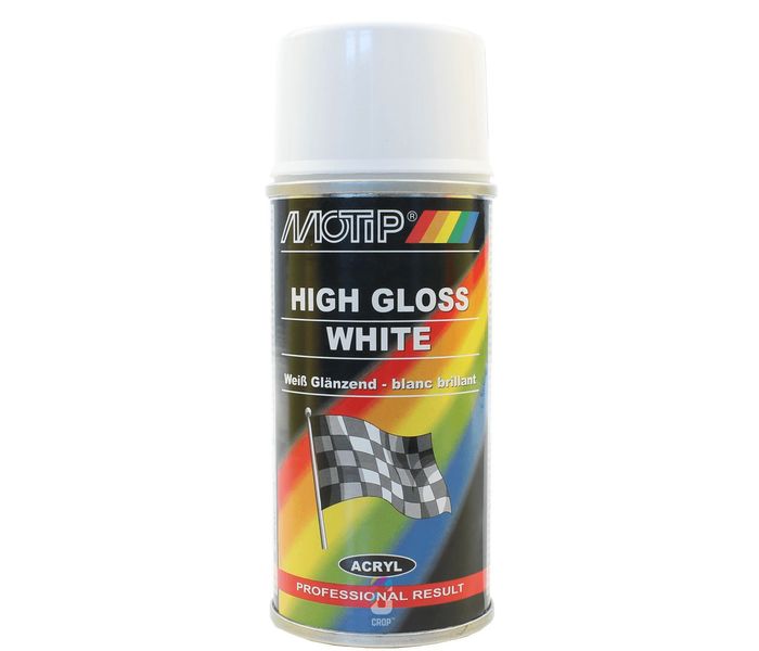 De 150ml spuitbus witte verf van MoTip is leverbaar in hoogglans effect. De hoogglans witte lak heeft een heldere glans met een diepe reflectie. De glans is zeer duurzaam en vergeelt niet!