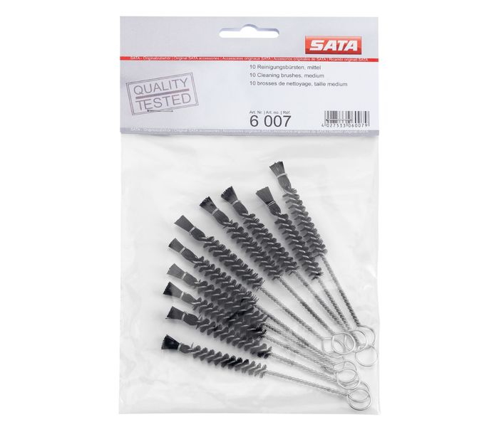 Deze originele SATA reinigingsborstelset bevat 10 borstels in fijne en grove uitvoeringen, ideaal voor nauwkeurig reinigen van spuitpistolen, nozzles en kleine onderdelen. De set biedt duurzame nylon haren, geschikt voor intensief gebruik zonder beschadiging van oppervlakken.