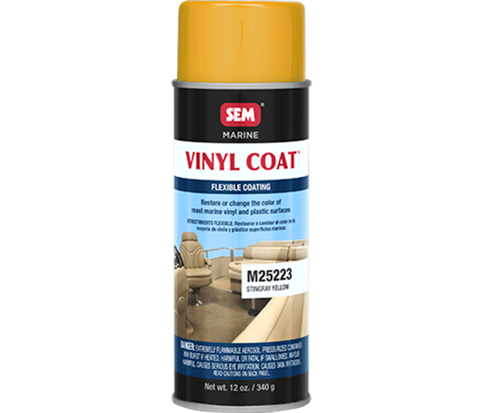 SEM Marine Vinyl Coat Stingray Yellow is een hoogwaardige, flexibele coating speciaal ontwikkeld voor het herstellen en vernieuwen van vinyl oppervlakken in onder andere maritieme omgevingen. Deze duurzame formule biedt uitstekende UV-bescherming en is bestand tegen zout water, schimmels en slijtage, waardoor jouw interieur en kussens langer meegaan. Dankzij de eenvoudige spuitapplicatie hecht de vinylverf perfect zonder primer voor een professionele afwerking. Verkrijgbaar in diverse kleuren, biedt het een stijlvolle en langdurige oplossing voor verouderd of beschadigd vinyl. Ideaal voor autostoelen, boten, jetski’s en andere watergerelateerde toepassingen.