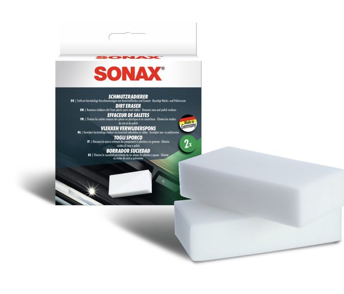 De SONAX Melaminespons per 2 stuks is speciaal ontwikkeld om op een veilige, effectieve manier hardnekkige vlekken te verwijderen van kunststof en andere gevoelige oppervlakken in en rondom het voertuig. Dankzij de microfijne structuur van de spons, vergelijkbaar met een fijne schuurpad, worden vuildeeltjes en strepen moeiteloos losgeweekt zonder gebruik van schoonmaakmiddelen. Enkel een beetje water is voldoende.