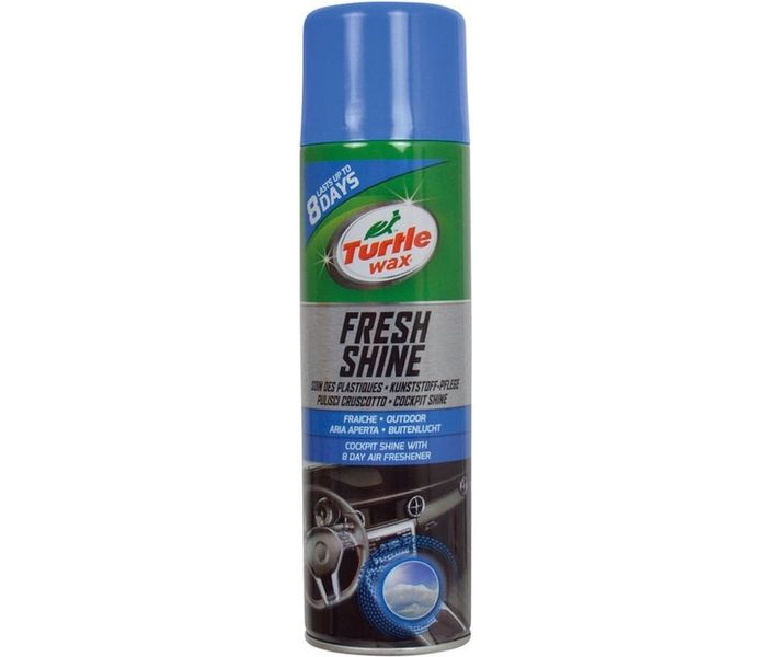 Turtle Wax Fresh Shine Outdoor is een zachte interieurreiniger dat kan worden gebruikt op alle kunststof interieur oppervlakken. Met Fresh Shine Outdoor Cockpitreiniger van Turtle Wax blijven er na het reinigen van het interieur geen vervelende resten achter.