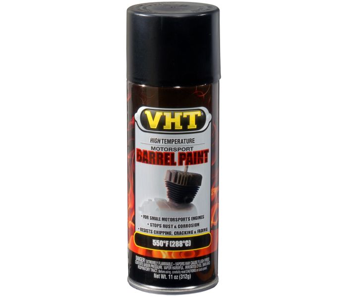 VHT Barrel Paint Zwart zijdeglans spuitbus is een hittebestendige lak om je cilinders en de cilinderkoppen te spuiten in een nieuwe kleur. Doordat spuitbus cilinderverf Zwart zijdeglans bestand is tot 288°C blijft de kleur lang mooi en goed zitten. Dankzij de hoogwaardige kwaliteit is de verf voor cilinders slijtvast en bestand tegen mechanische belasting, zuren en roest.