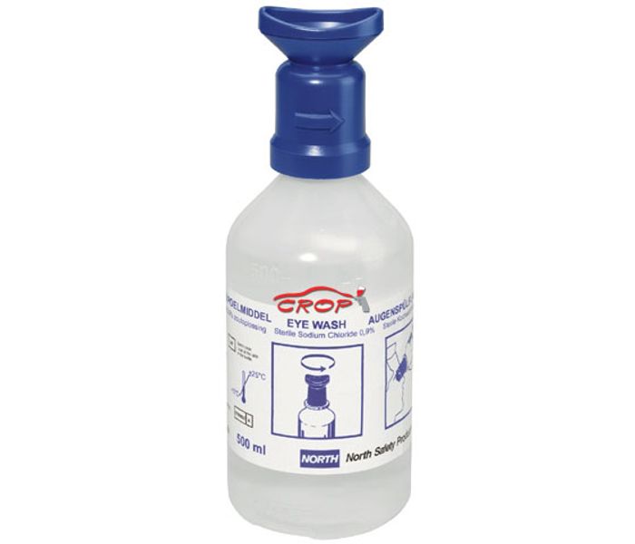 Butelka do przemywania oczu wypełniona 500 ml sterylnego, buforowanego roztworu soli fizjologicznej do szybkiego i łatwego przemywania oczu w nagłych wypadkach!
